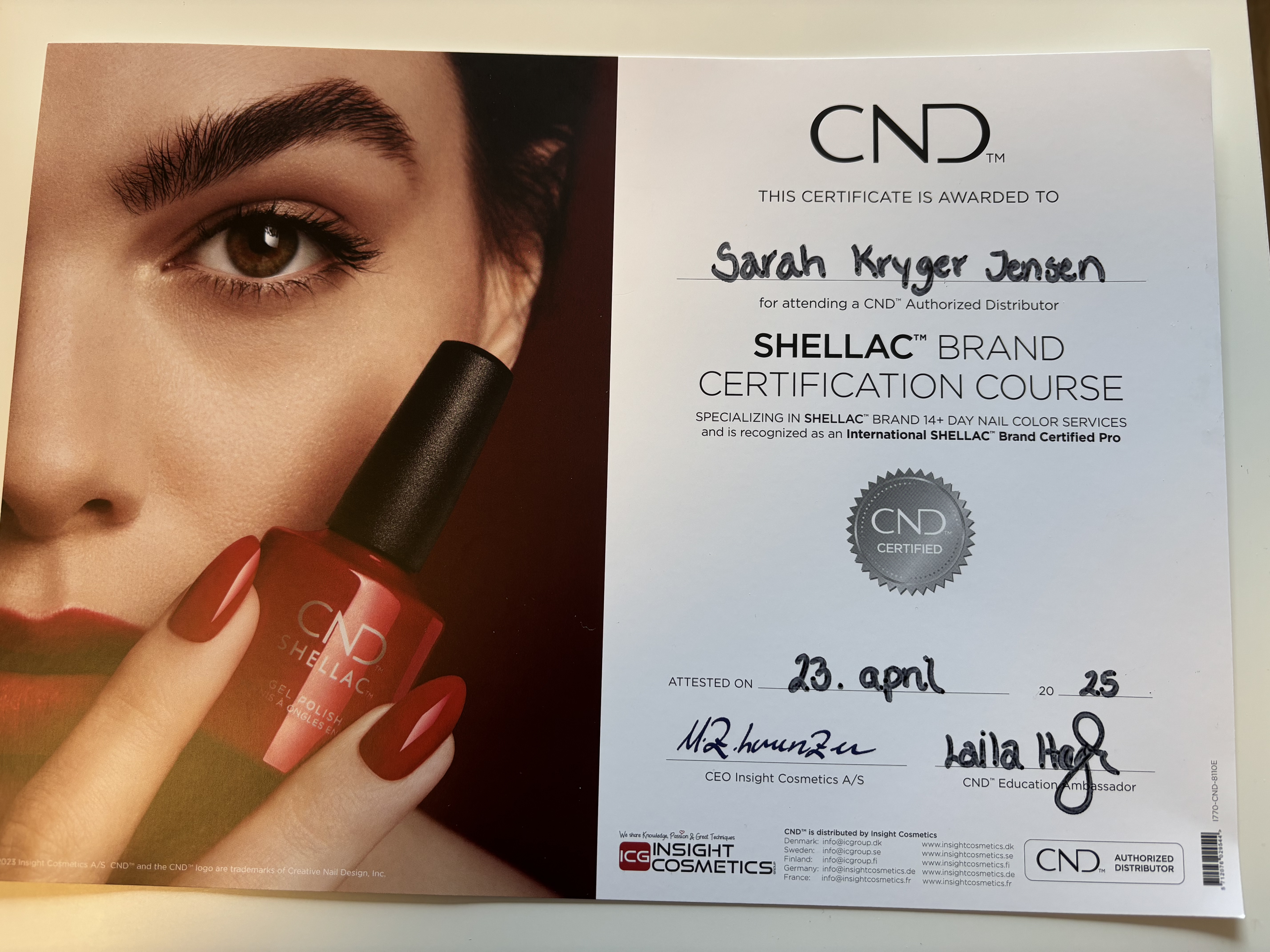 Det viser at jeg har viden om produkterne, neglens anatomi og opbygning og har styr på fileteknikerne.
